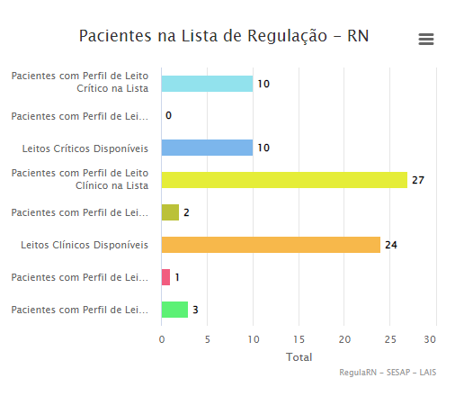 Neste período, havia dez (10) pacientes com perfil para leitos críticos na lista de regulação e nenhum aguardando avaliação. Foram registrados disponíveis 10 leitos críticos e outros 24, sendo clínicos.